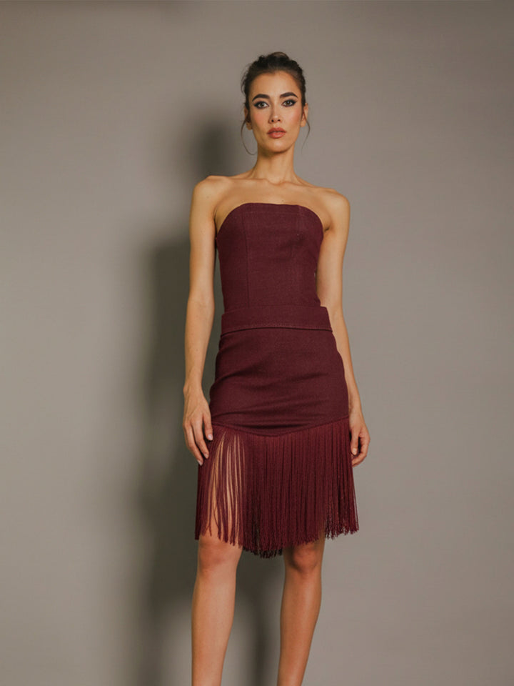 Effortless rhythm and body-conscious design come together in the Fringe Mini Skirt by BLESSHS handmade luxury. Crafted in dark blue denim and handmade in Colombia, this limited edition piece features sculpted fringe that flows with each step, enhancing its asymmetric V-cut hem. The folded waistband and fitted silhouette add definition and structure, while the invisible zipper closure in the back provides a sleek, flattering finish. Ideal for editorial styling, cocktail nights, or as a standout piece in any collector’s wardrobe.
